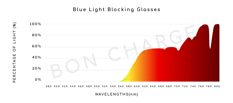 Our Blue Light Blocking Glasses technology is custom made, targeting the exact frequencies of light the academic literature states we should filter (100% blocking from 400nm to 550nm). Not all blue light glasses on the market target specific wavelengths of light and either block too little or too much of the wrong kind of light, making them suboptimal.
